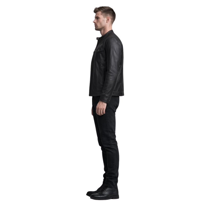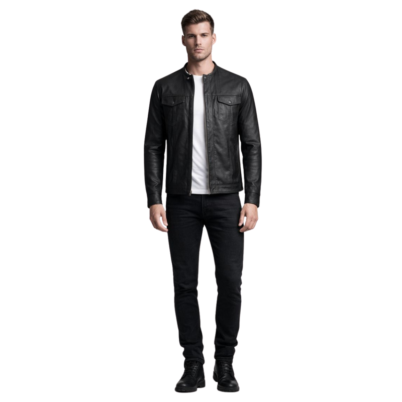 The Vabritte™ Frostline Apex Leather Jacket is designed for men who demand warmth without compromise. Built with a sleek quilted leather construction and a clean front zip profile, this jacket balances modern performance with timeless style. The high stand collar and streamlined chest zippers deliver a sharp, composed look that feels confident in motion and commanding at rest.