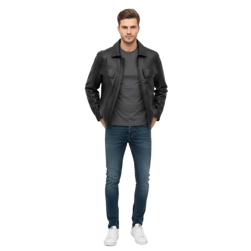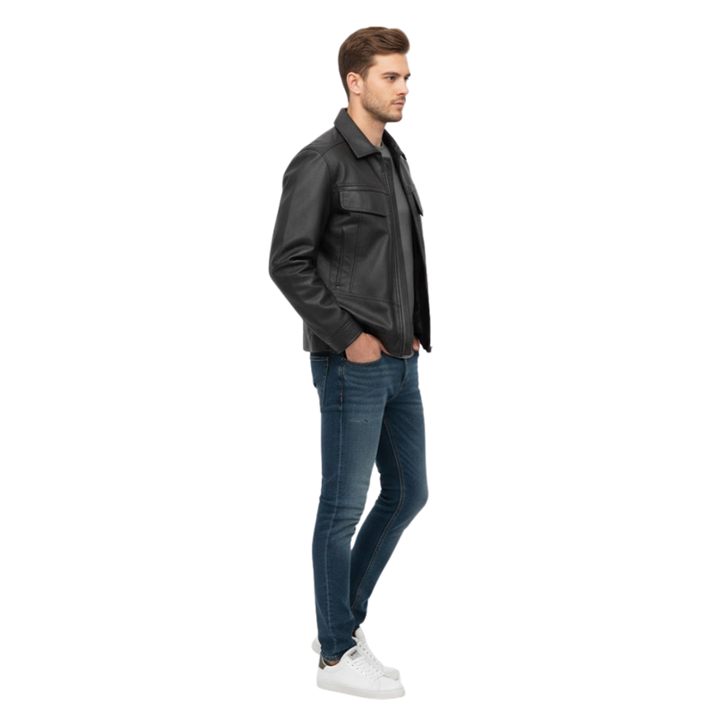 The Driftline Utility Leather Jacket brings effortless cool to your wardrobe. Every detail, from the clean lines to the soft leather texture, speaks of craftsmanship and confidence. It’s made for men who value subtle sophistication and never settle for average.