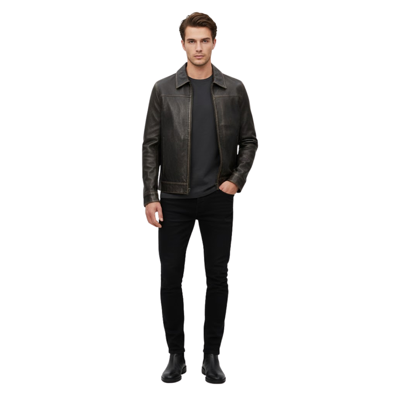 The Vabritte™ Ironshade Classic Leather Jacket blends vintage character with modern refinement. Made from premium leather with a naturally weathered finish, it delivers that lived-in depth and richness from the very first wear. The clean zipper front and traditional collar keep the silhouette sharp, turning a timeless style into a bold personal statement.